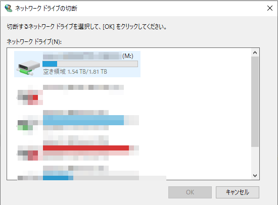 2. 切断したいネットワークドライブを選択して、OKを押します