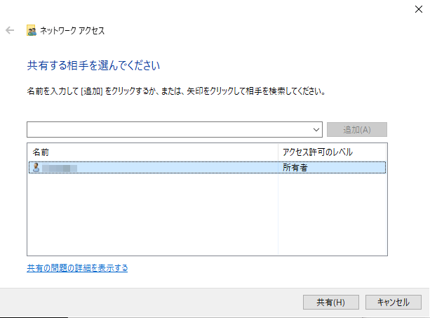 3. 共有する相手を選択します。基本自分しかアクセスしないので自分のアカウントを選択し、共有