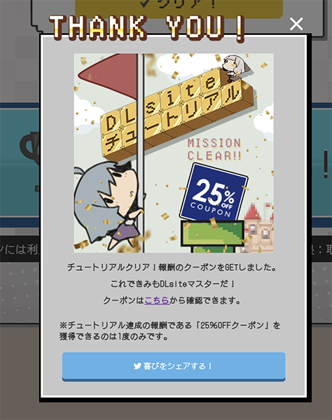 DLsiteチュートリアルをクリアして25%クーポンをゲットする