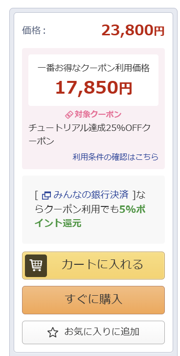 クーポンを利用すると必ず金額に反映されますので、しっかり金額を確認してから購入しましょう!