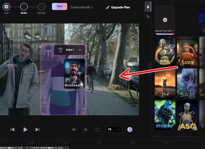 無料の範囲で出来ることは、テンプレート動画の指定されたキャラをデフォルトで用意されているCGキャラクタに差し替え、動画出力するまでです。