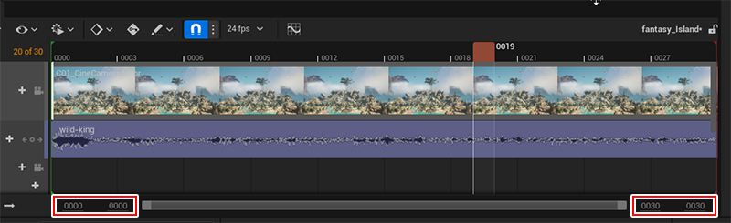 まずは先に尺を決めます。今回は30秒ほどに設定。作業エリアも30秒にします