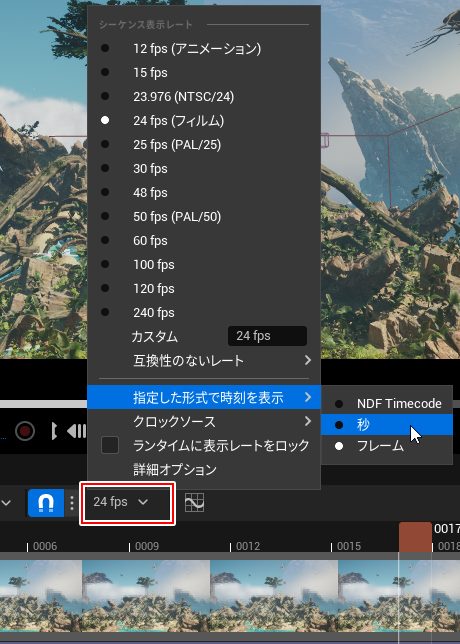 実は上記再生した所、初め1秒しか再生されませんでした。調べた所、表示がフレームになっていたのが原因でした。