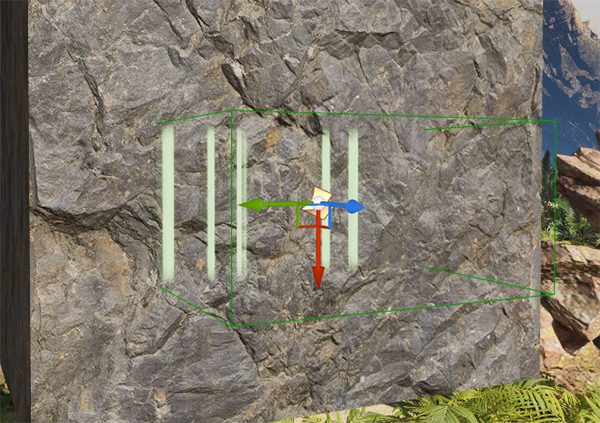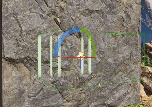 - 紫の矢印を岩壁に向けるように回転すると表示されます。