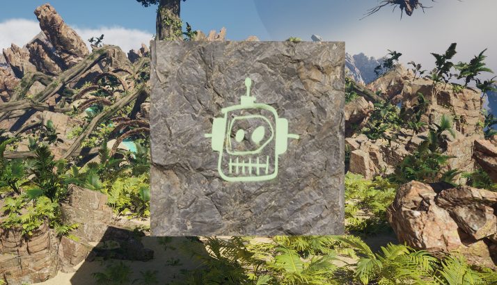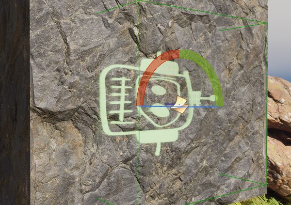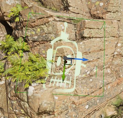 そのため、緑の枠が投影先(石壁)に埋まるように配置しないと表示されません。