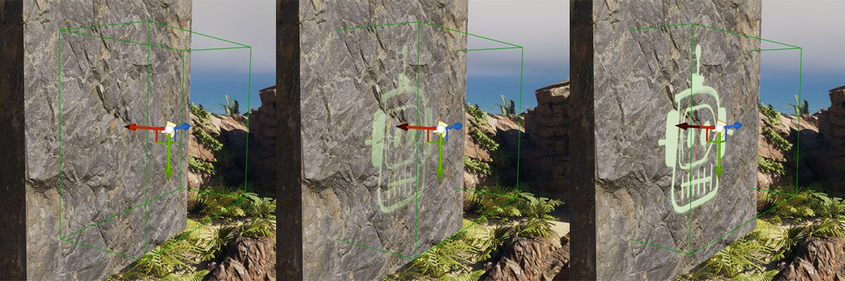 - 平面で投影されるものなので、凹凸のあるスタティックメッシュに使用する場合は角度やサイズをよくよく調整してください