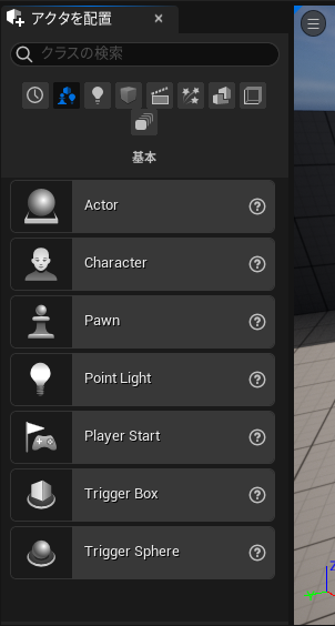 アイテムの追加をする際に利用。ビューポートにドラッグで追加