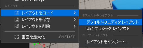 ウィンドウ>レイアウトをロード>デフォルトのエディタレイアウト