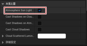 適用した後、Directional Lightを選択して Atomosphere Sun Lightのチェックを入れます(自動的にONになっている場合もあります