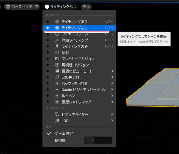 ビューポート上でライト無しでも床メッシュを確認するには?