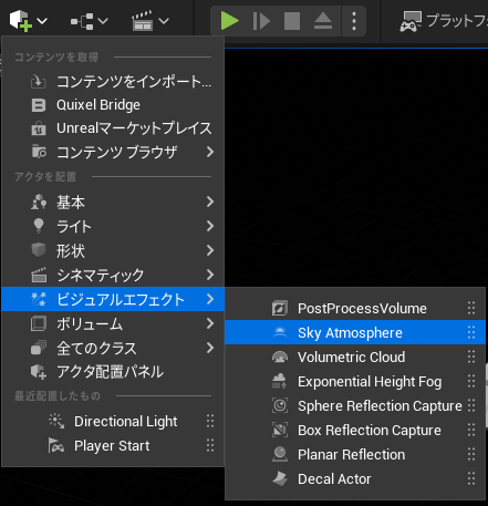 Sky AtomoSphereはDirectional Lightと連動してワールド内に大気を適用します。