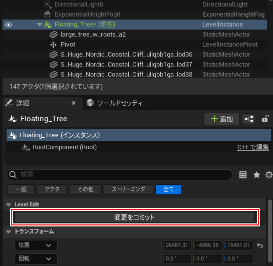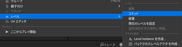 - 編集が終わったら、右クリック>レベル>コミット又はインスタンスを選択し、詳細>変更をコミットを押します。
