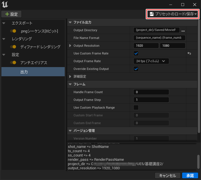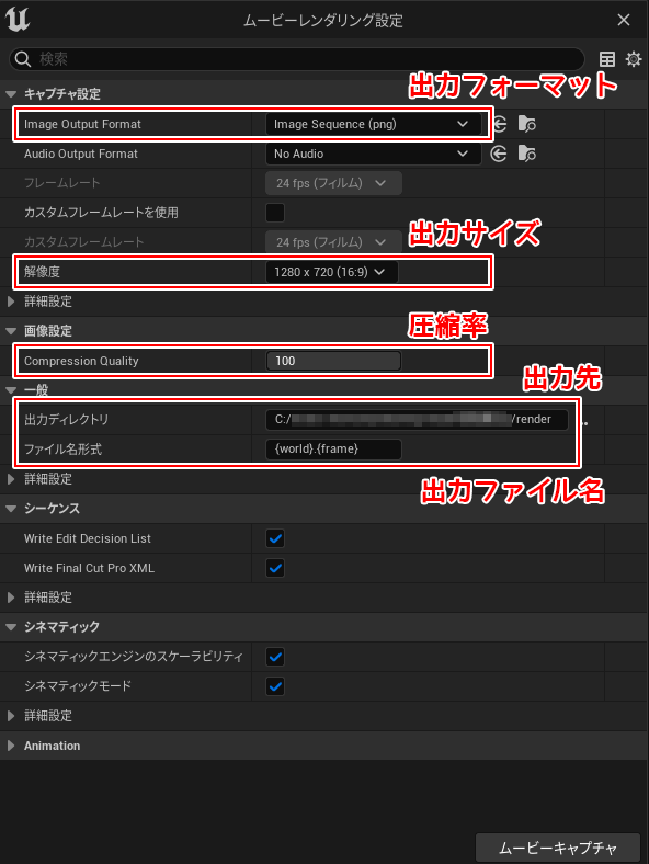 シネマティック ムービーの出力|Unreal Engineドキュメント