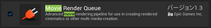 こちらは事前にMovie Render Queueプラグインを追加する必要があります。