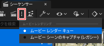 プラグインが有効だと、カチンコマーク右の点からレンダリングの設定を切り替えることが出来ます