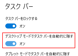 タスクバーを右クリック>タスクバーの設定>デスクトップモードでタスクバーを自動的に隠す