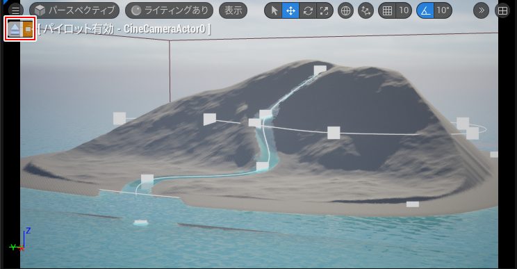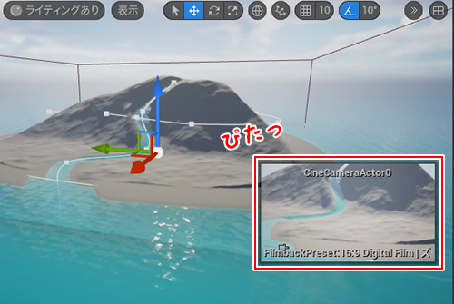 厳密に言えばカメラ以外のアクタにも使用できるようですが、直感的にカメラやライトを配置するために用意されている機能だそう