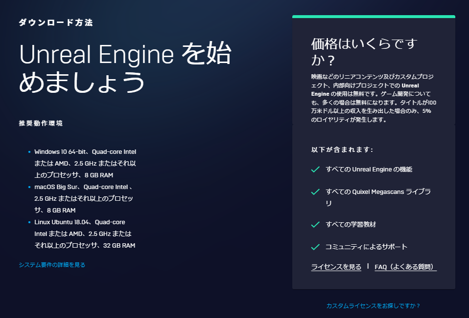 今回の再インストールに至った経緯がUE4時代のUnreal Engineライセンスの変更方法がわからなかったことにあったため、これからやろうとしているチュートリアル(※UE5のアーリーアクセス版を使用。クリエイターライセンス推奨だった)で出来ることと異なるんじゃないか!!??と少々混乱しました。