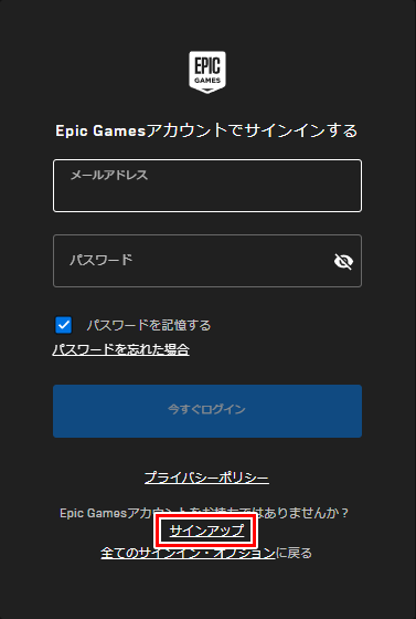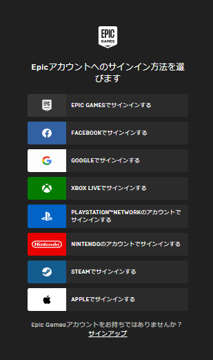 5. Epicアカウントへのサインイン方法を求められるので、今回作成した一番上のEpicGamesアカウントを選びます
