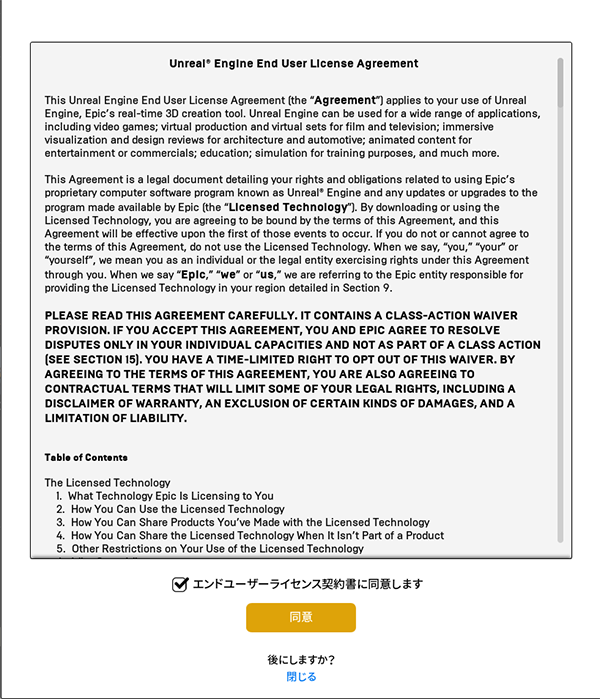 以前はクリエイターライセンスとパブリッシングライセンスを選択する方式だったようですが、今回その選択肢は特に表示されませんでした。ライセンスの整理がされたようです。