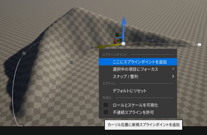スプライン上を右クリックするとスプラインポイントを追加することが出来て、変形できます