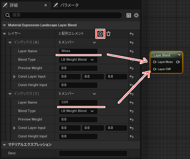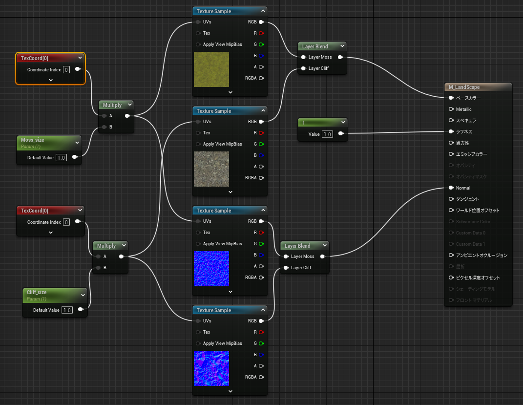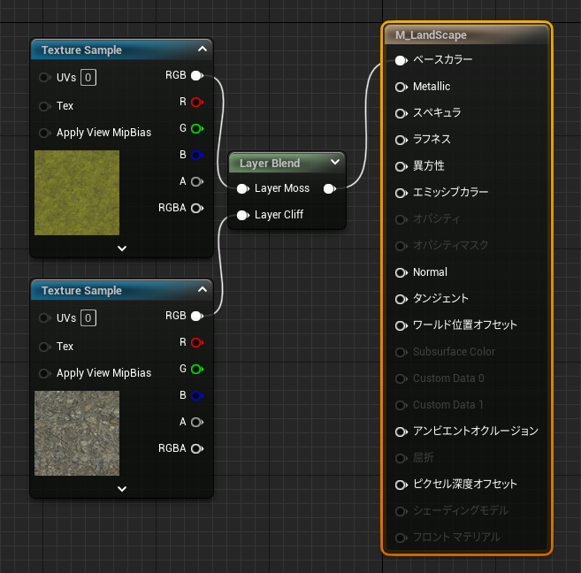 - LandscapeLayerBlendノードを作成