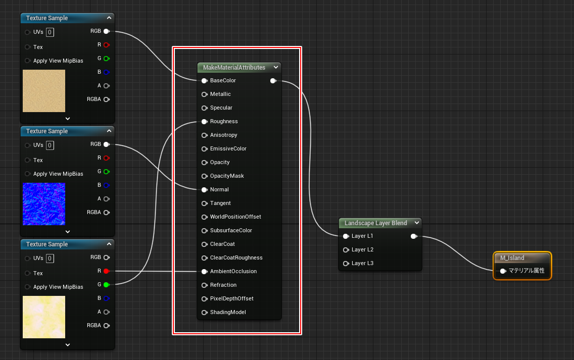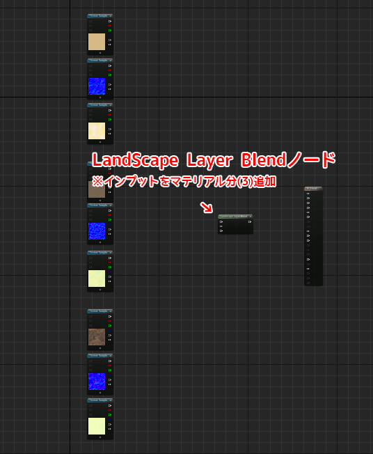 2. LandScapeLayerBlendノードを追加してこのような状態にします。