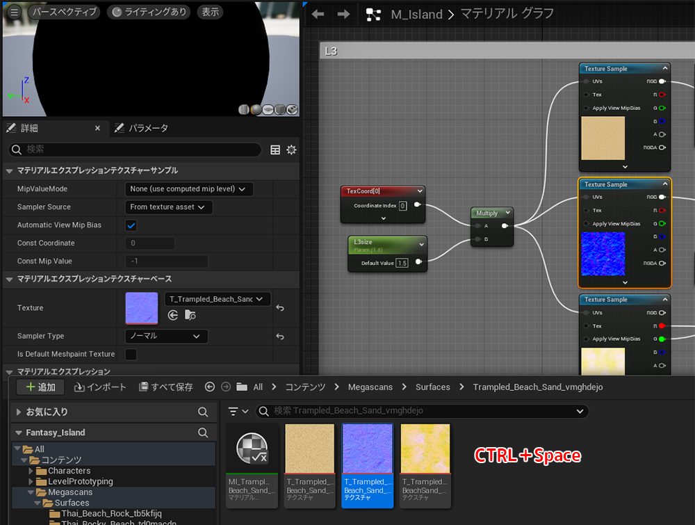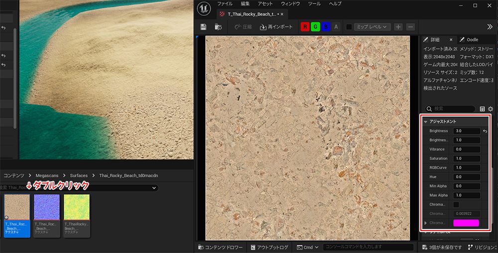コンテンツブラウザからテクスチャをダブルクリックして詳細を開きます。