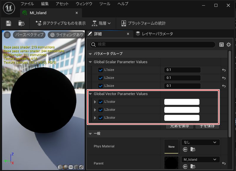 基礎講座での学びを元にマテリアルインスタンス作成していきます。