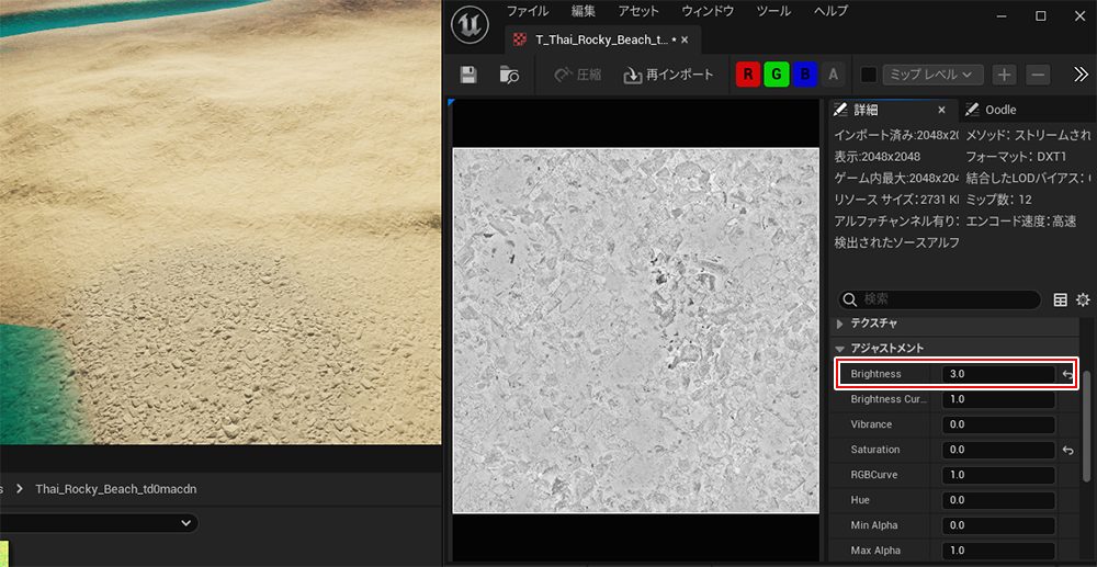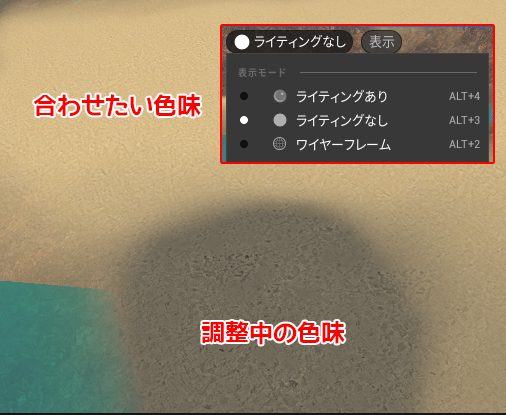 調整しているテクスチャがまだ暗いことが確認できます。
