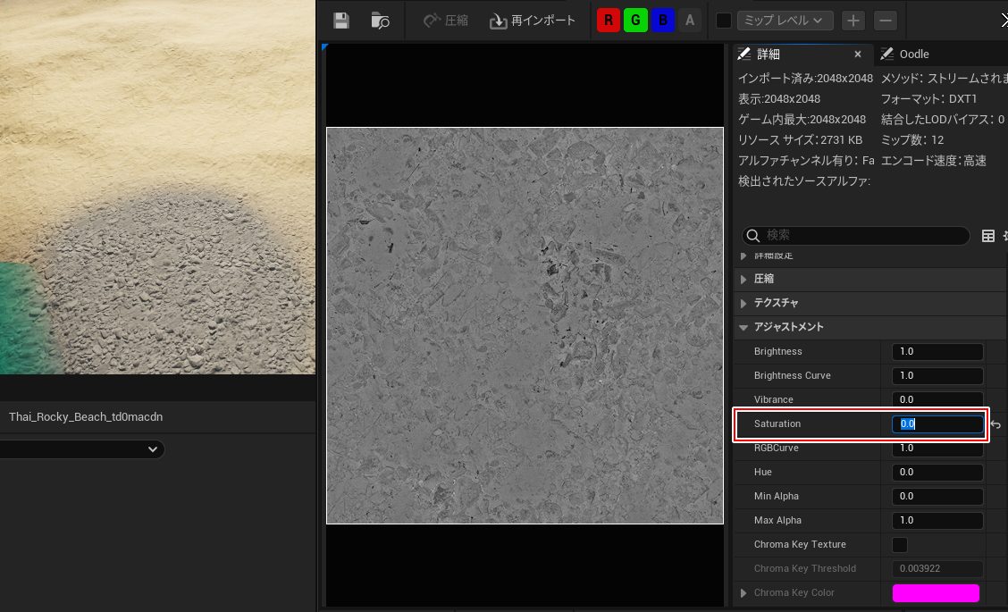 2. 調整したいテクスチャの彩度(Saturation)を0にします。