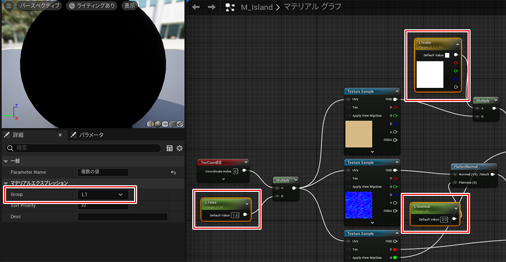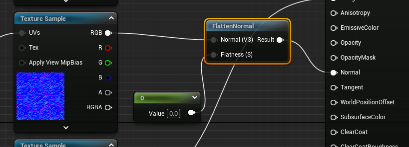 1. FlattenNormalノードでノーマルマップを調整出来るようにします。