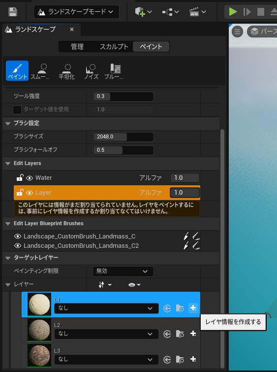 1. マスターマテリアルが作成出来たらランドスケープに適用します。
