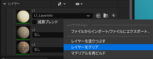 マテリアルを右クリック>レイヤーをクリア