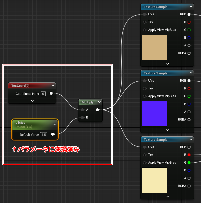 を使ってUVのタイリングを調整します。