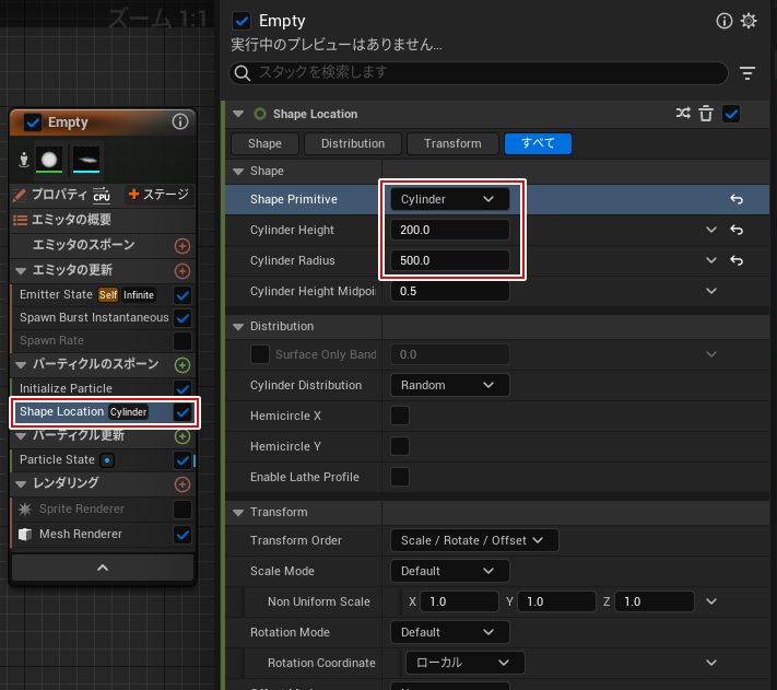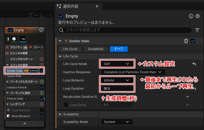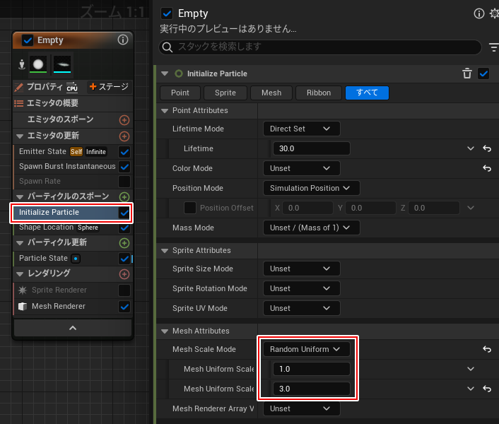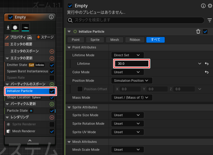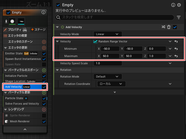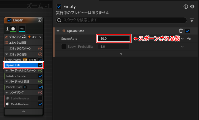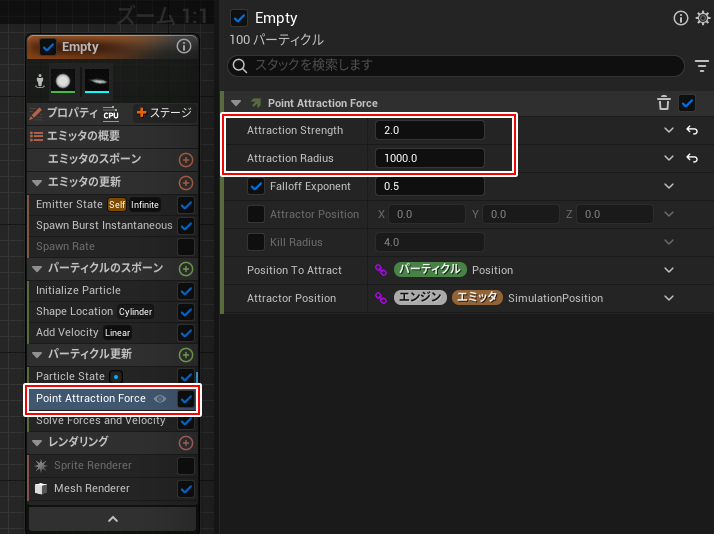 パーティクル更新はスポーンされた後にどのように変化していくかを設定する