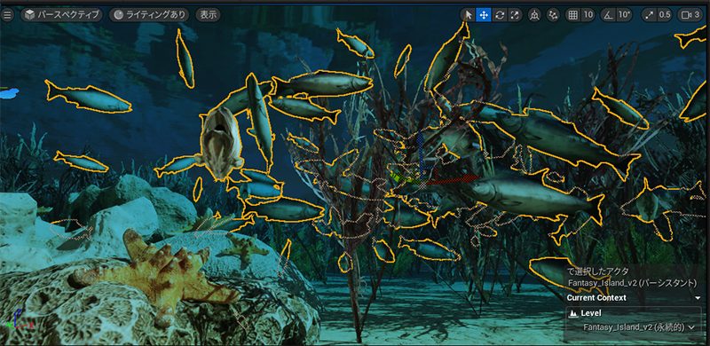 19回目。今回はセクション4:風景制作講座の⑥。今回はNiagaraを使って魚群を作成、アニメーションさせます。