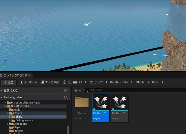 DLしたRuralAustraliaアセット内にあるNiagaraで作成された鳥も参考になるやもしれません