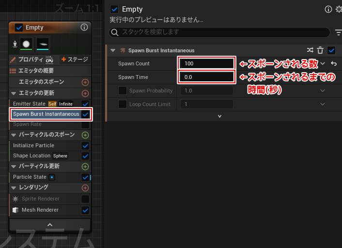 Spawn RateではなくSpawn Burst Instantaneousを使う