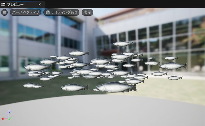 Niagaraを使って魚群を作成、アニメーションさせます。