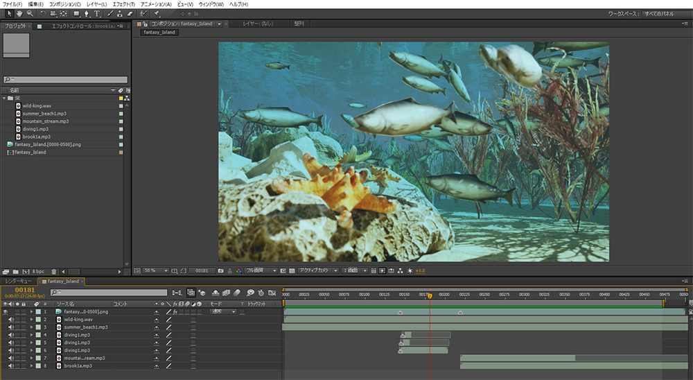 講座内では無料のDaVinci Resolveを使用していましたが、使い慣れたAFter Effectsで編集していきます。