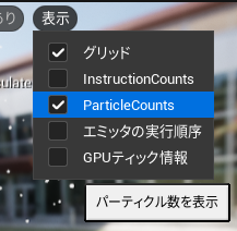 おすすめ設定:表示>PirticleCounts パーティクルの数を表示させる。