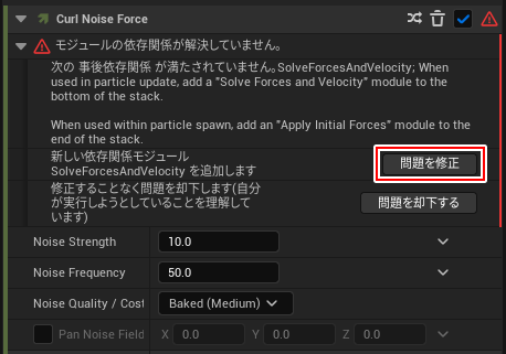 必要なモジュールが足りてませんよ、という警告のため問題を修正をクリックします。