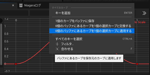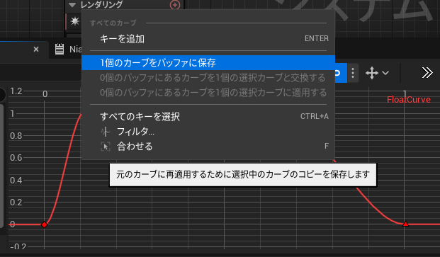 - カーブの何もない所を右クリック>1個のカーブをバッファに保存をクリック