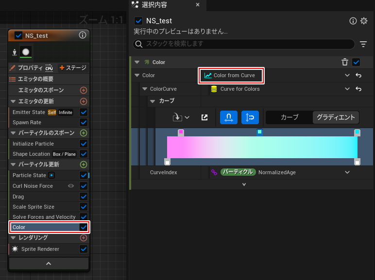 ColorモジュールにダイナミックインプットのColor from Curve を追加します