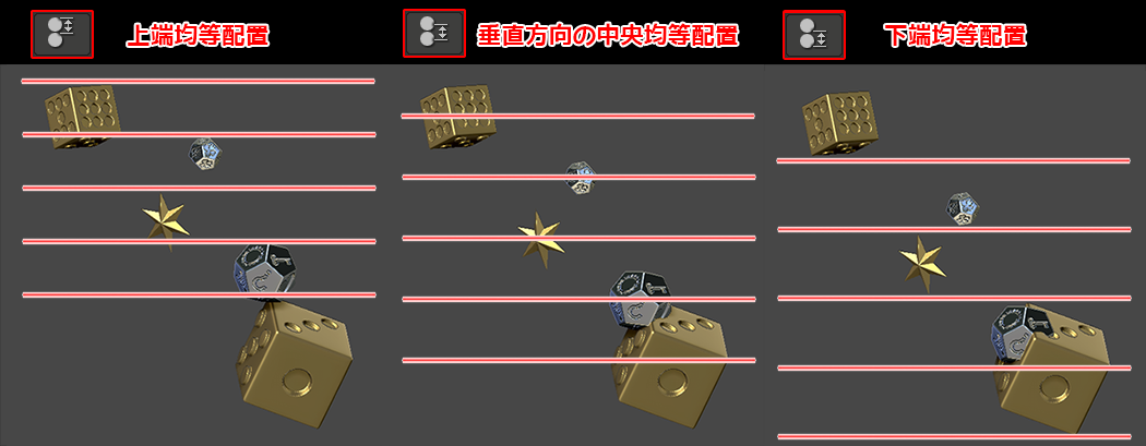 下段:上端均等配置・垂直方向の中央均等配置・下端均等配置