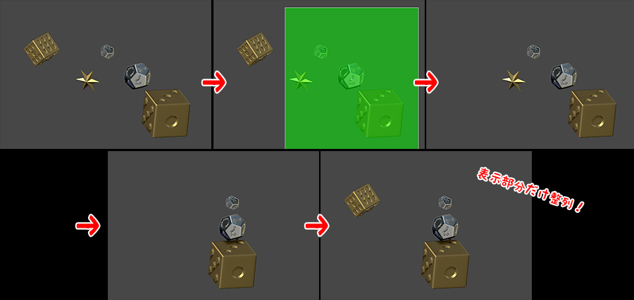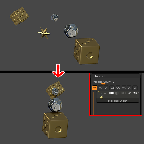 選択したSubToolを基準にするので今回は一番下の金色のサイコロのDice5を選択して実行していきます。