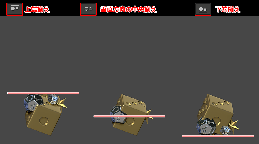 下段:上端揃え・垂直方向の中央揃え・下端揃え