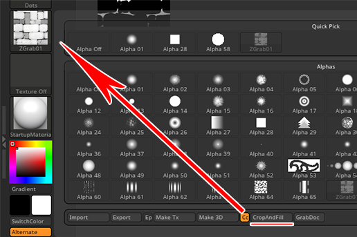 Alpha>Transfer>GrabDocまたはAlphaパレット下部にあるGrabDocでアルファ化します