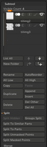 Gizmo3Dを使ってPlane3D をマスキング、Tool>SubTool>Split>Split Maskd Points(Split UnMaskd Pointsでも可)でPlaneとブロックを分けます。